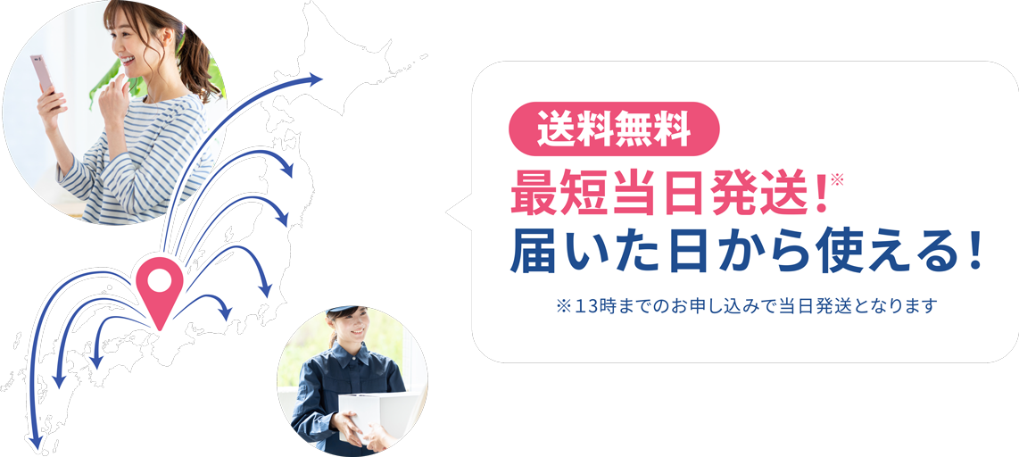 • ※審査や地域・在庫の状況により、即日発送ができない場合もございます。